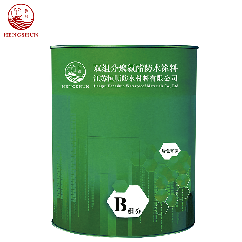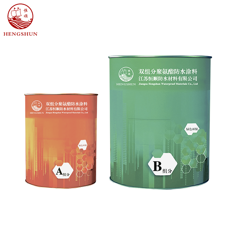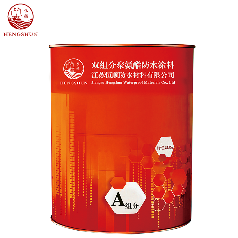 双组分聚氨酯防水涂料,A组分是以聚醚和异氰酸酯为主要材料聚合反应制成的预聚物,B组分配以多种助剂、填料等混合制成。A、B组分按一定配合比搅拌均匀,涂刮在基面上,固化后形成整体而富有弹性的防水胶膜。